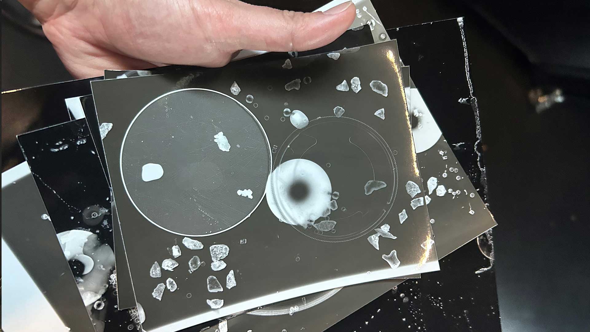To answer this, I have developed a chronology of analogue and digital techniques—drawing, painting, photograms, screen printing, lithography, glass sculpture, and ceramics—paired with web archiving, creative coding and generative AI. My visual research culminates as an interactive installation called QATALIVE2. It invites viewers to experiment with quantum phenomena in a visceral way. The visuals of the installation are built using HY5LIVE3 embedded with quantum algorithms4 generated by an actual quantum computer.