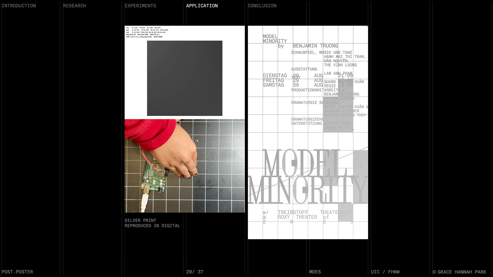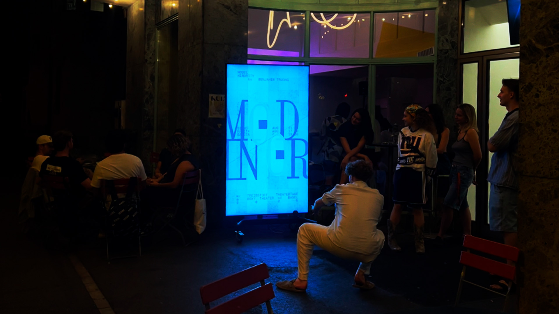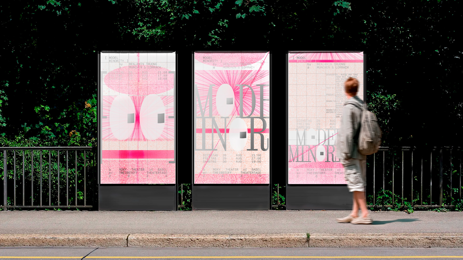 This led to a series of experiments, including a co-operation with Director Benny Truong and Treibstoff Theatertage Basel. A prototype for Model Minority(2025, Theater play) was installed on streets across Basel and at ROXY Theater, enabling live observations of interaction with bodies, gestures, proximity, and ambient shifts.