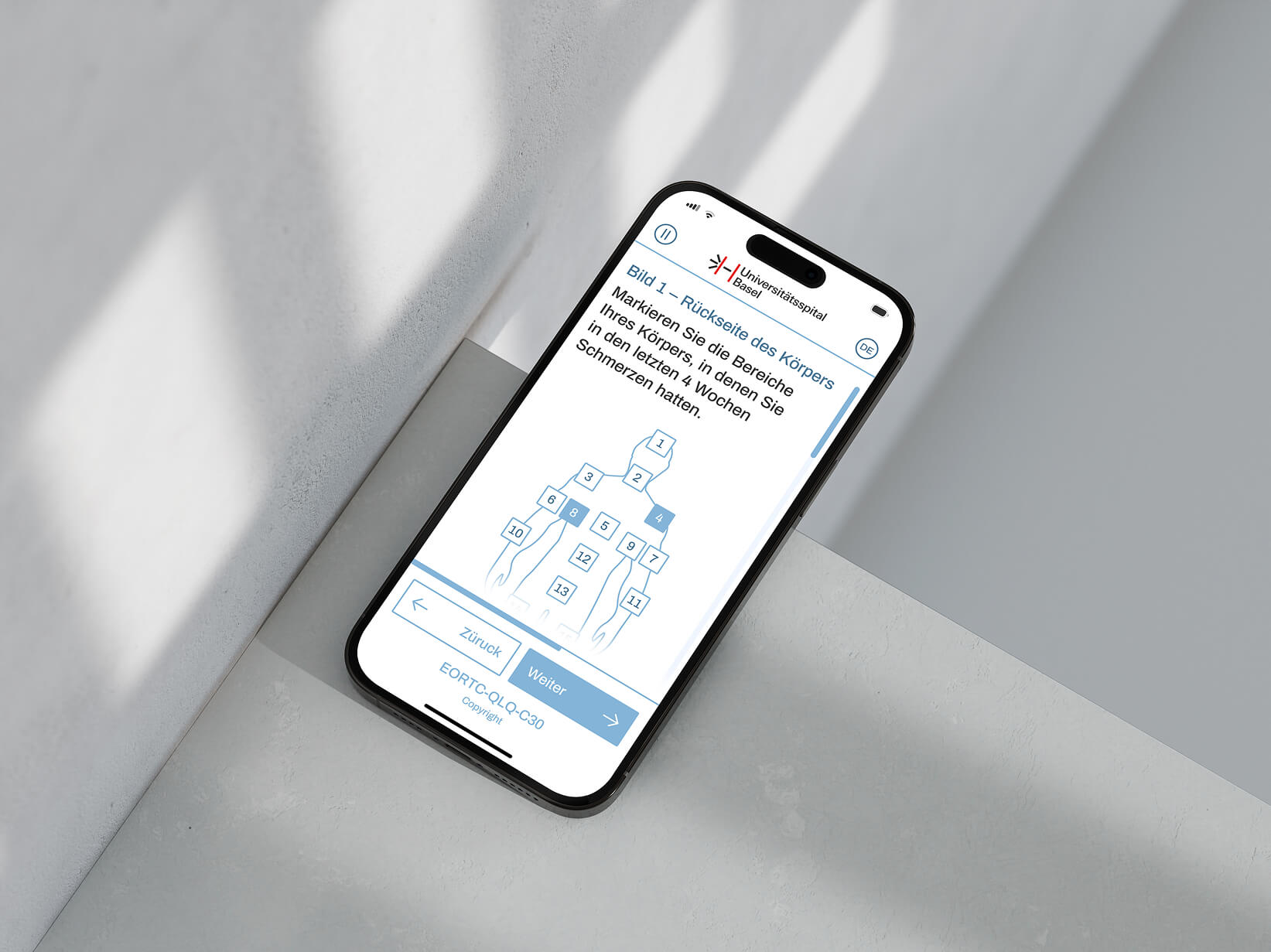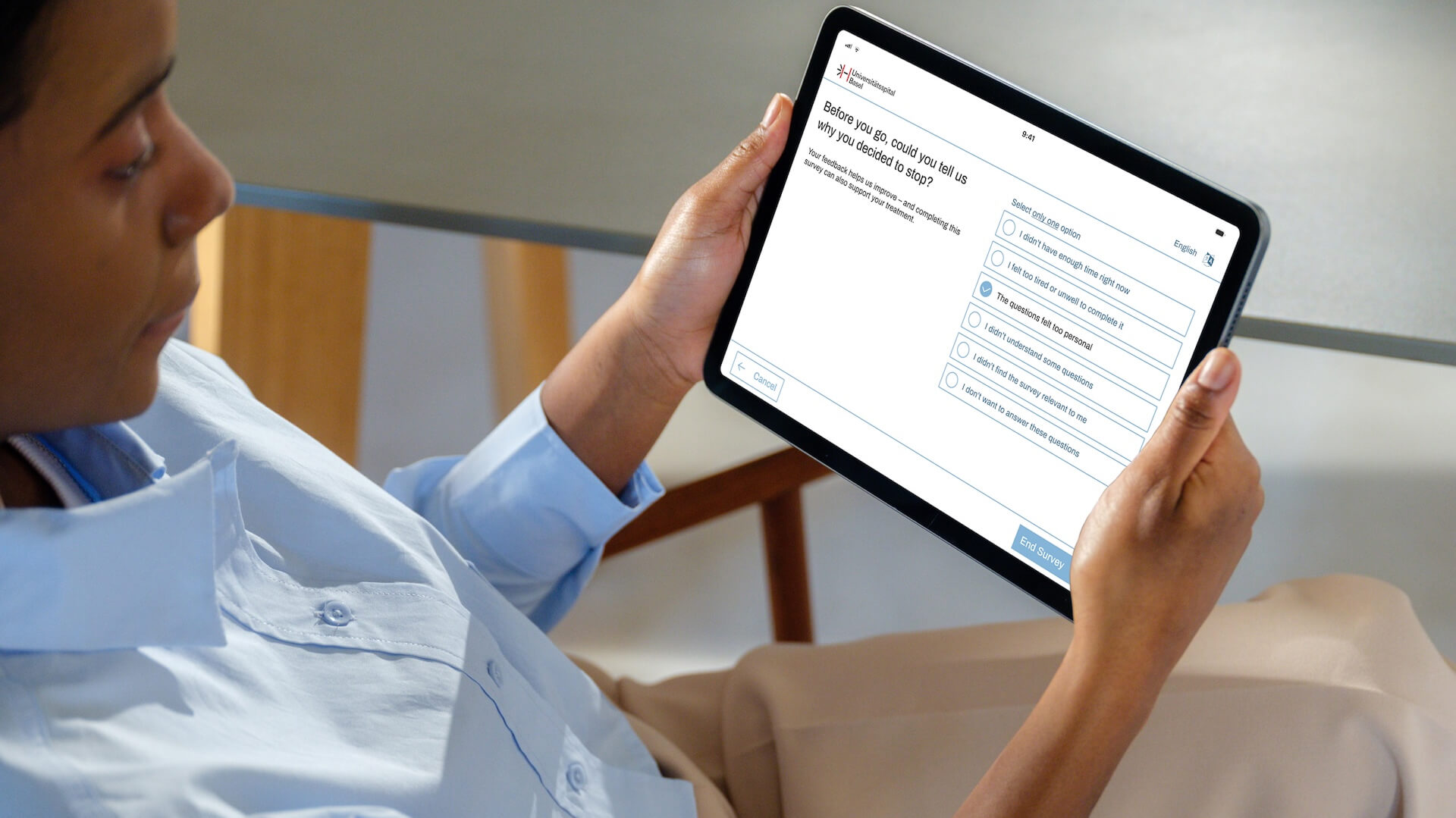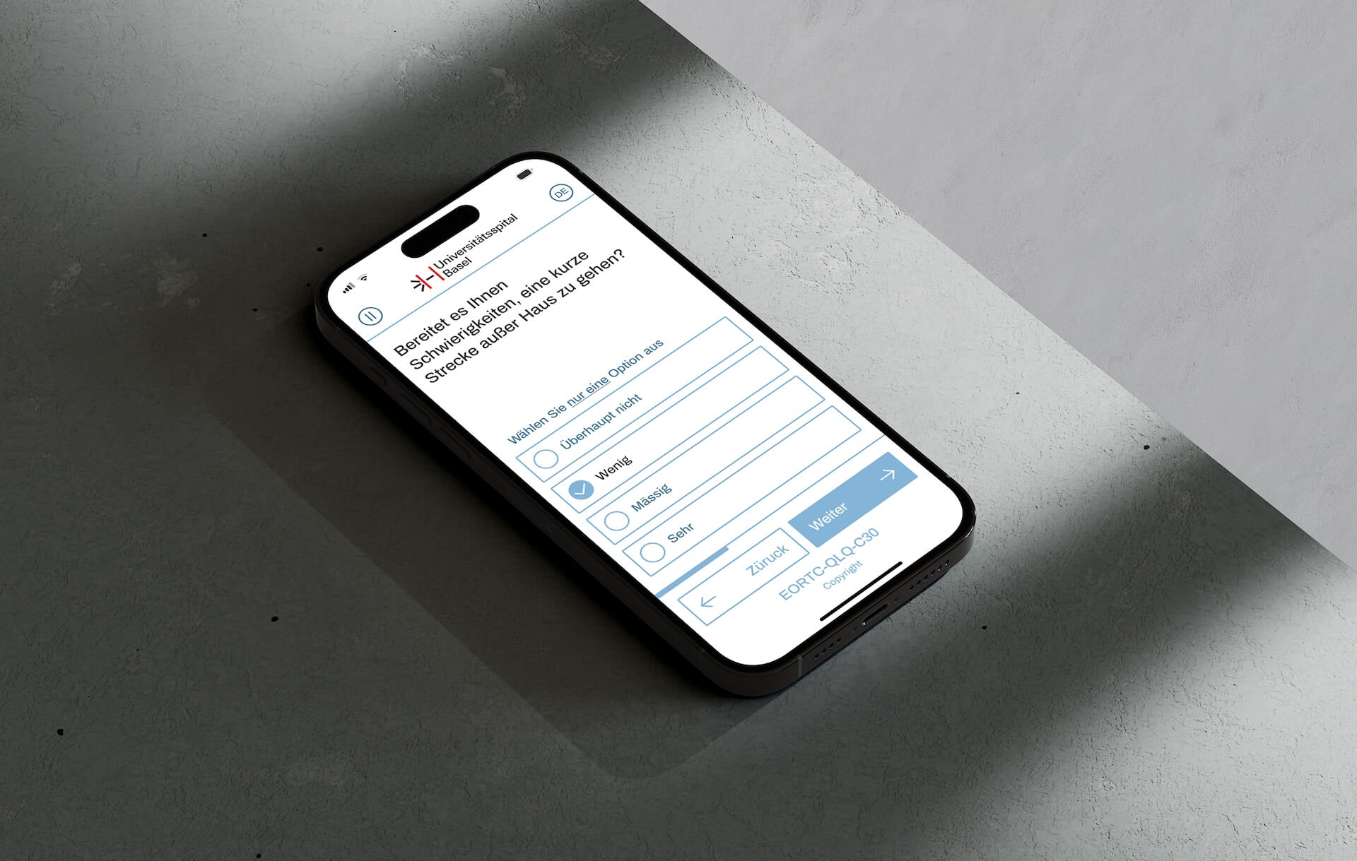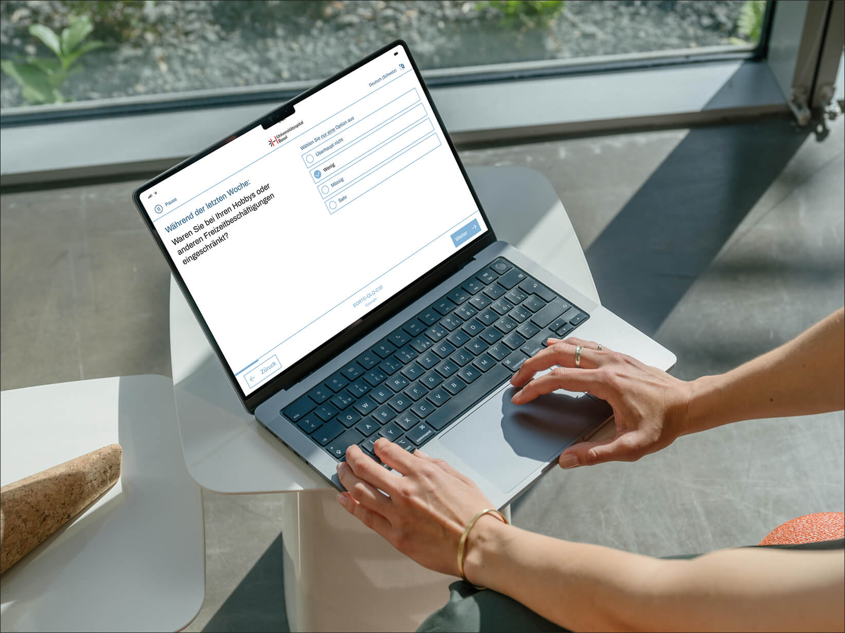 The opportunity to put these reflections into practice came through a collaboration with Universitätsspital Basel. The hospital is undergoing a digital transformation, and PROMs (Patient-Reported Outcome Measures) became the starting point for testing my approach. I worked on redesigning the PROMs app — facing real-world constraints like medical regulations and institutional branding. Along the way, I tested prototypes with patients and learned how nuanced trust can be — shaped by small, thoughtful design decisions.