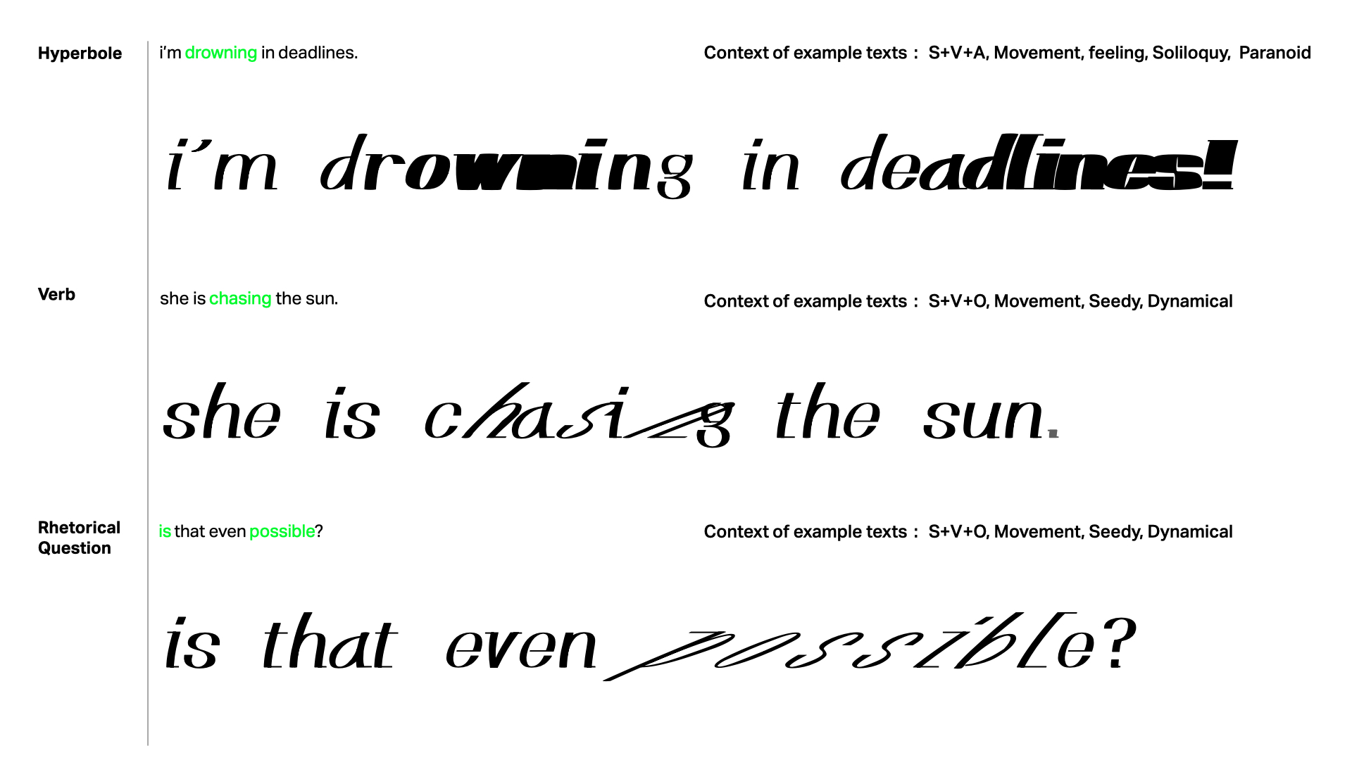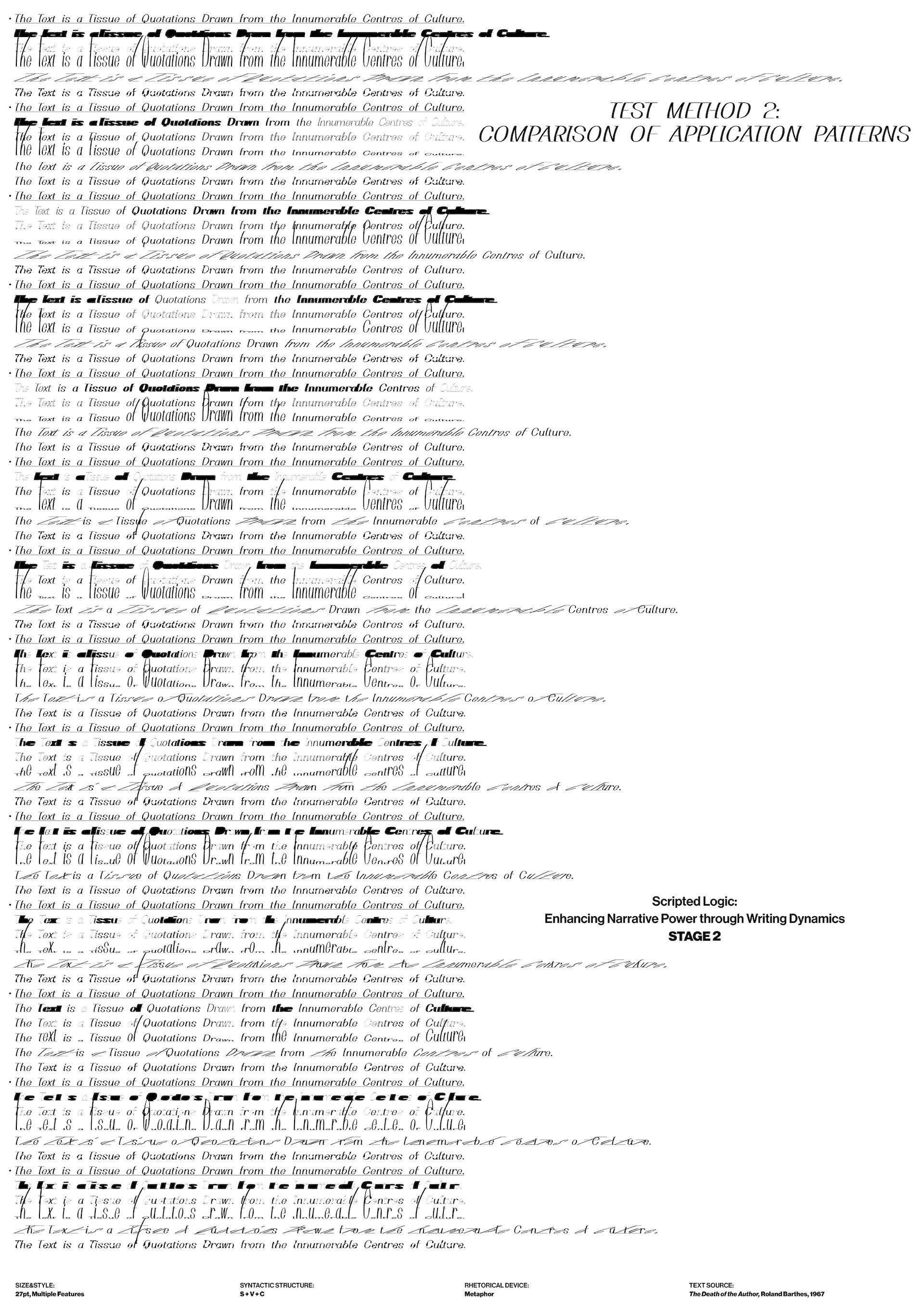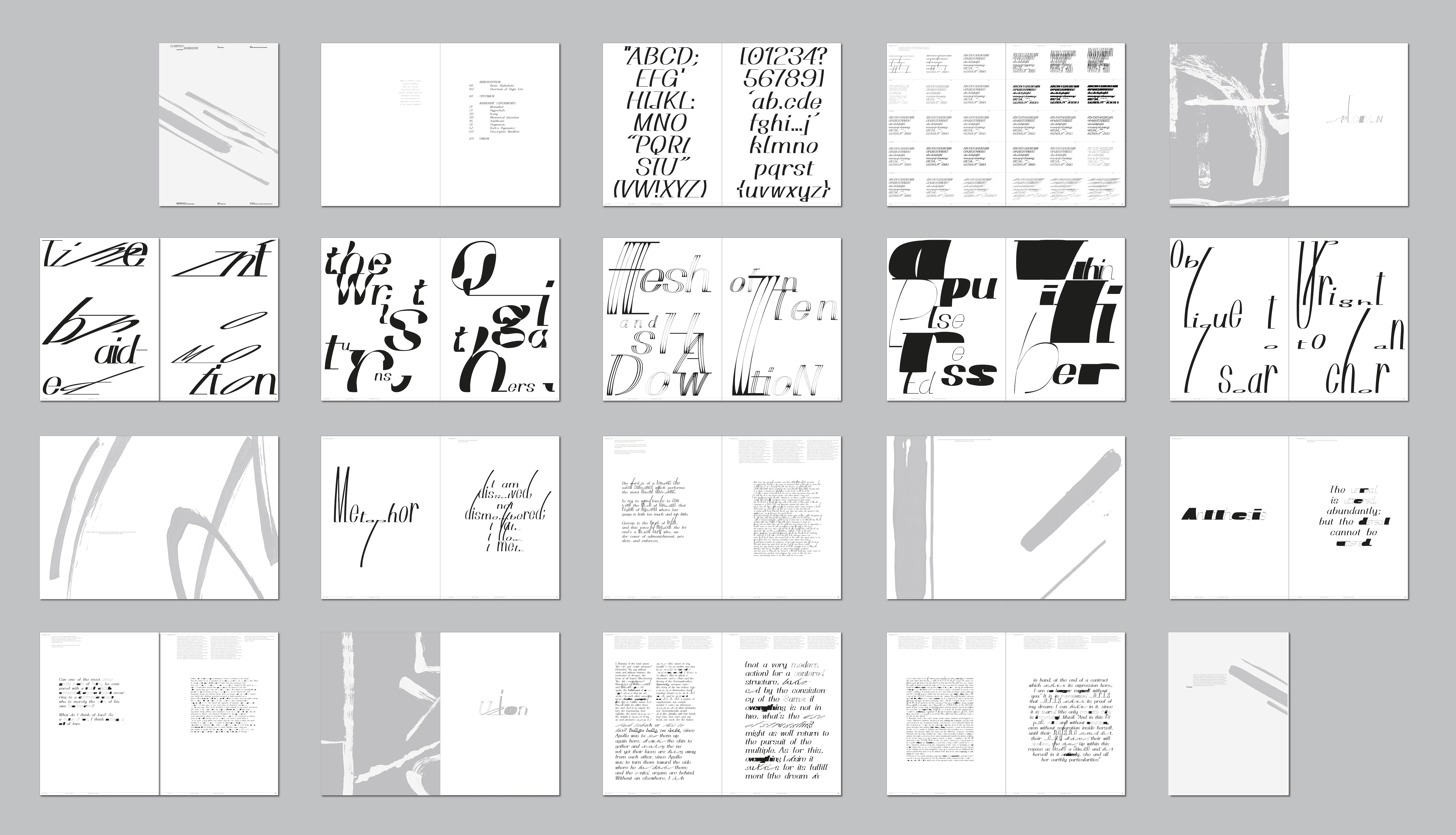 This project explores how script writing dynamics – angle, continuity, pressure, rotation, speed – can convey narrative beyond language. Inspired by Chinese calligraphy and works of asemic writing pioneers, it repositions non-semantic mark-making within a 2025s design paradigm. Grounded in semiotics, graphonomics, and semantics, it frames script as a visual syntax. It creates variable fonts and interaction-transform writing into an expressive, adaptive storytelling tool.